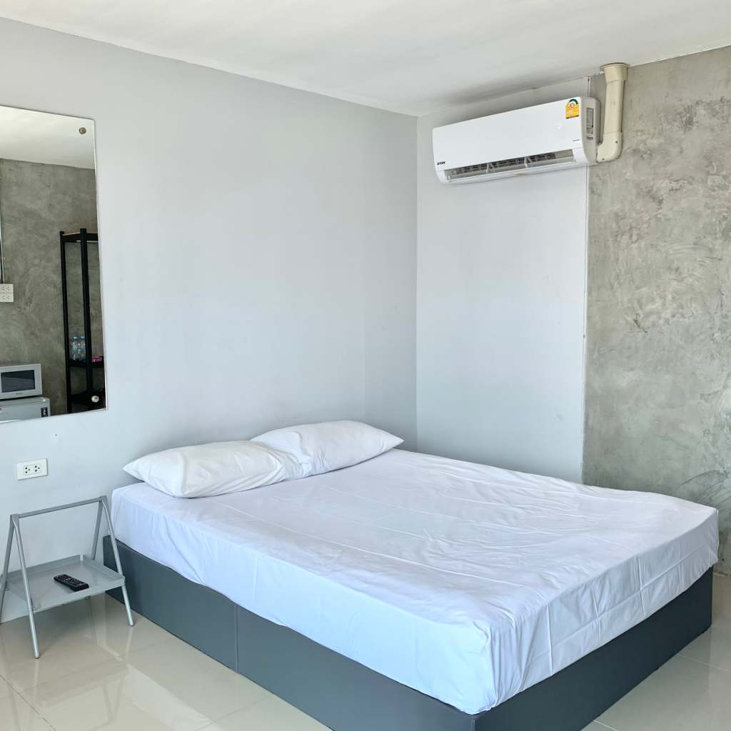- สิ่งอำนวยความสะดวกเด่น: แอร์ ตู้เย็นเล็ก โต๊ะทำงานพร้อมเก้าอี้ น้ำอุ่นในห้องน้ำ
